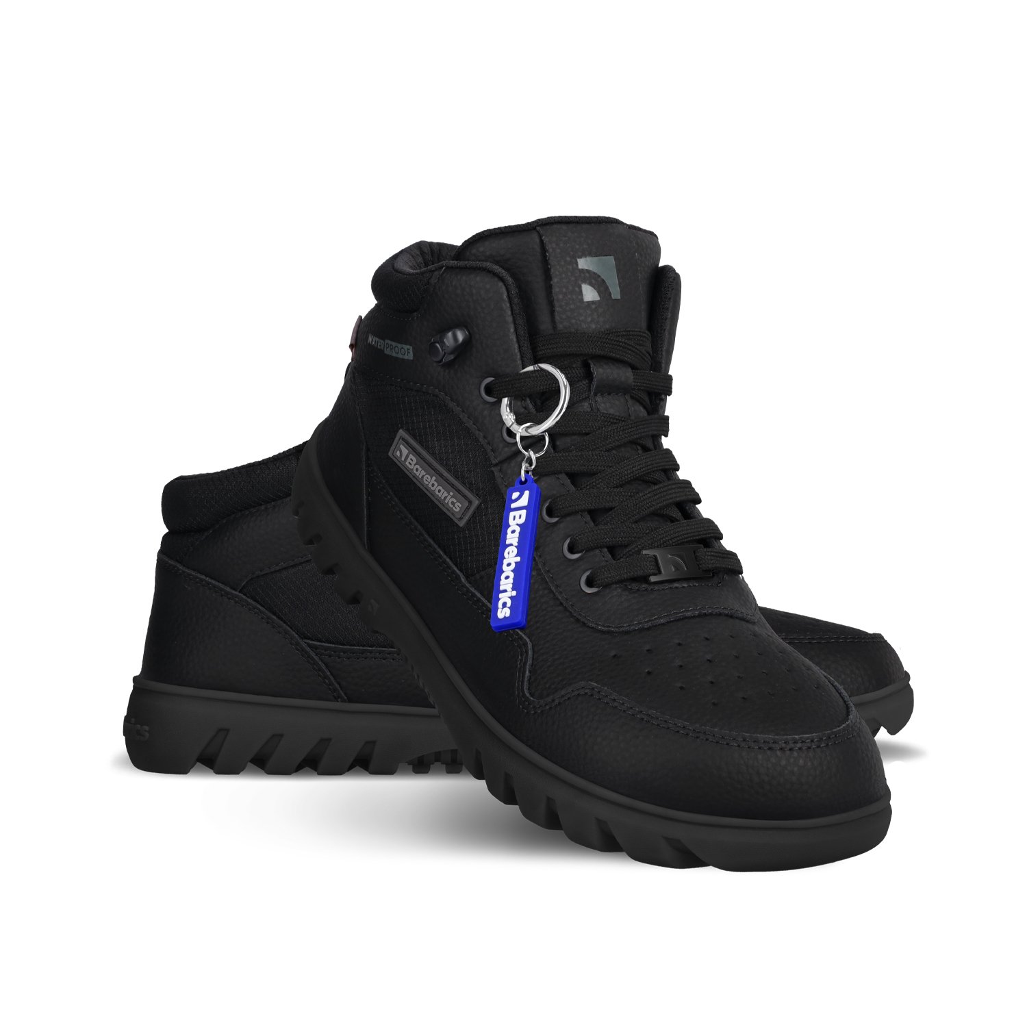 - Barebarics logo placed on the shoe, hooks, laces or sole