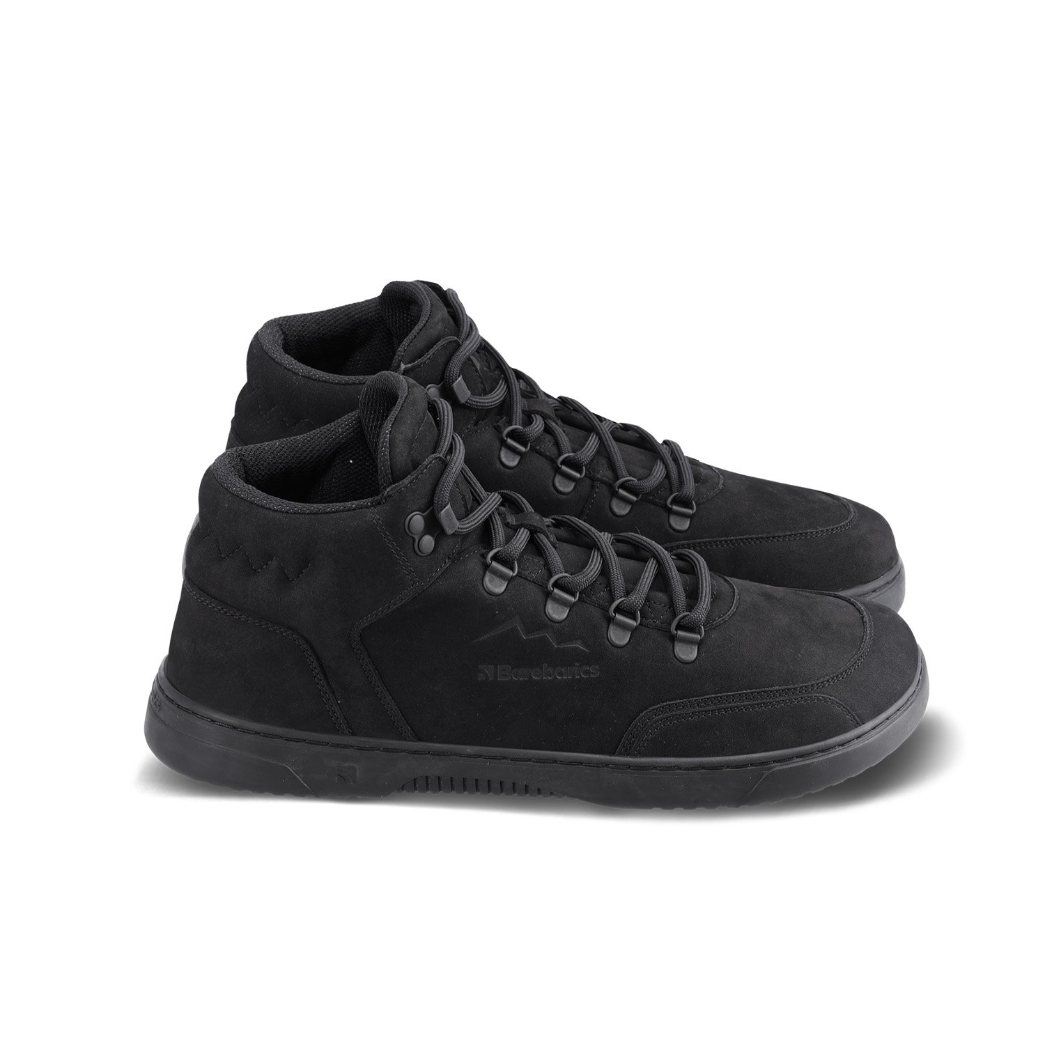 Ankle-high barefoot sneakers Barebarics Element in All Black are a perfect blend of unheard-of design and priceless comfort. Shoes so perfect for the ever-changing weather of spring and autumn. The sneakers are made from premium Nubuck leather, characteristic for its water-repellent properties. Those who love an extraordinary style will surely appreciate the detail in the form of the motif of mountains above the embossed Barebarics logo. Easy to put on/off, and the comfortable collar on the heel, emphasize the heavenly feeling of walking in these shoes.