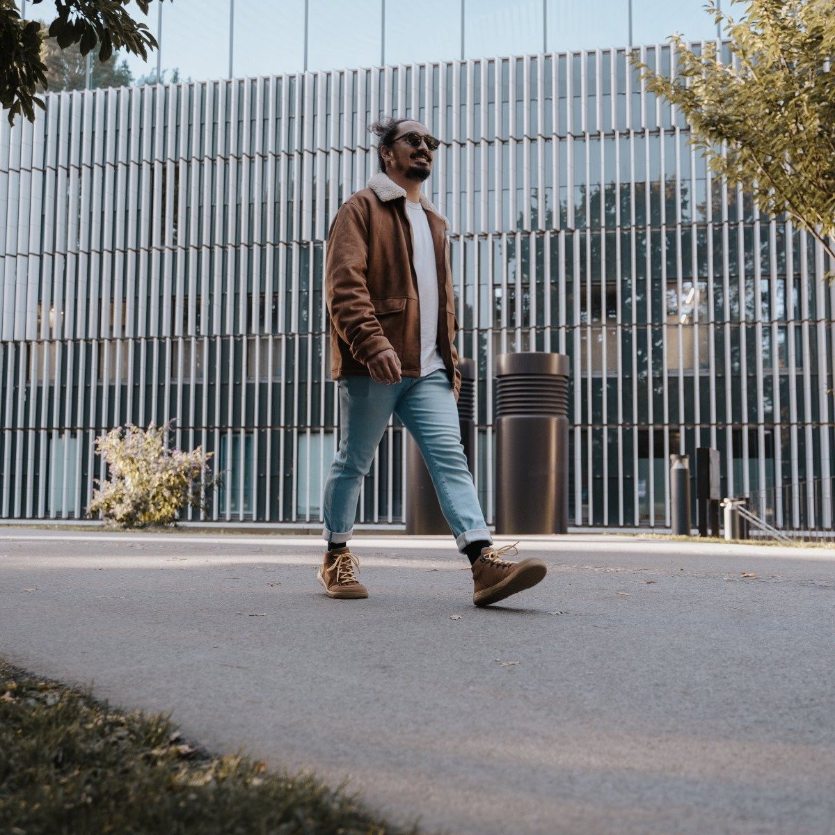 Ankle-high barefoot sneakers Barebarics Element in Walnut Brown are a perfect blend of unheard-of design and priceless comfort. Shoes so perfect for the ever-changing weather of spring and autumn. The sneakers are made from premium Nubuck leather, characteristic for its water-repellent properties. Those who love an extraordinary style will surely appreciate the detail in the form of the motif of mountains above the embossed Barebarics logo or the refreshing colour combination of laces, complementing the never-seen-before visual of these shoes. Easy to put on/off, and the comfortable collar on the heel, emphasize the heavenly feeling of walking in these shoes.