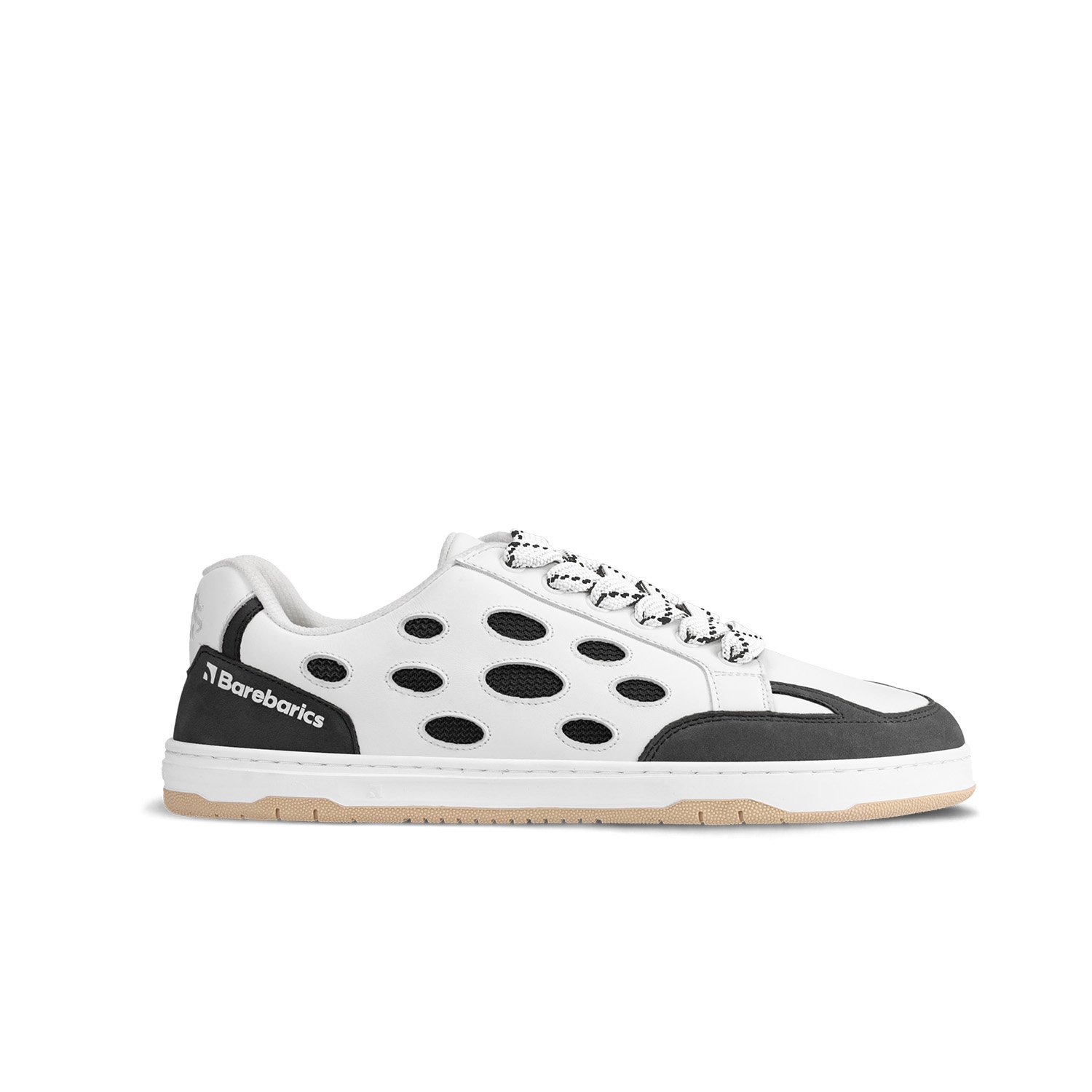 Barebarics Fusion barefoot sneakers in White & Charcoal will become a timeless staple in your shoe wardrobe. The breathable design on the sides, wide laces, and high-quality padding give these shoes a retro feel. You'll appreciate the combination of materials - premium Nappa leather, nubuck, and textile. These shoes are not only stylish but also offer unique barefoot comfort. Give your feet the pampering they deserve!