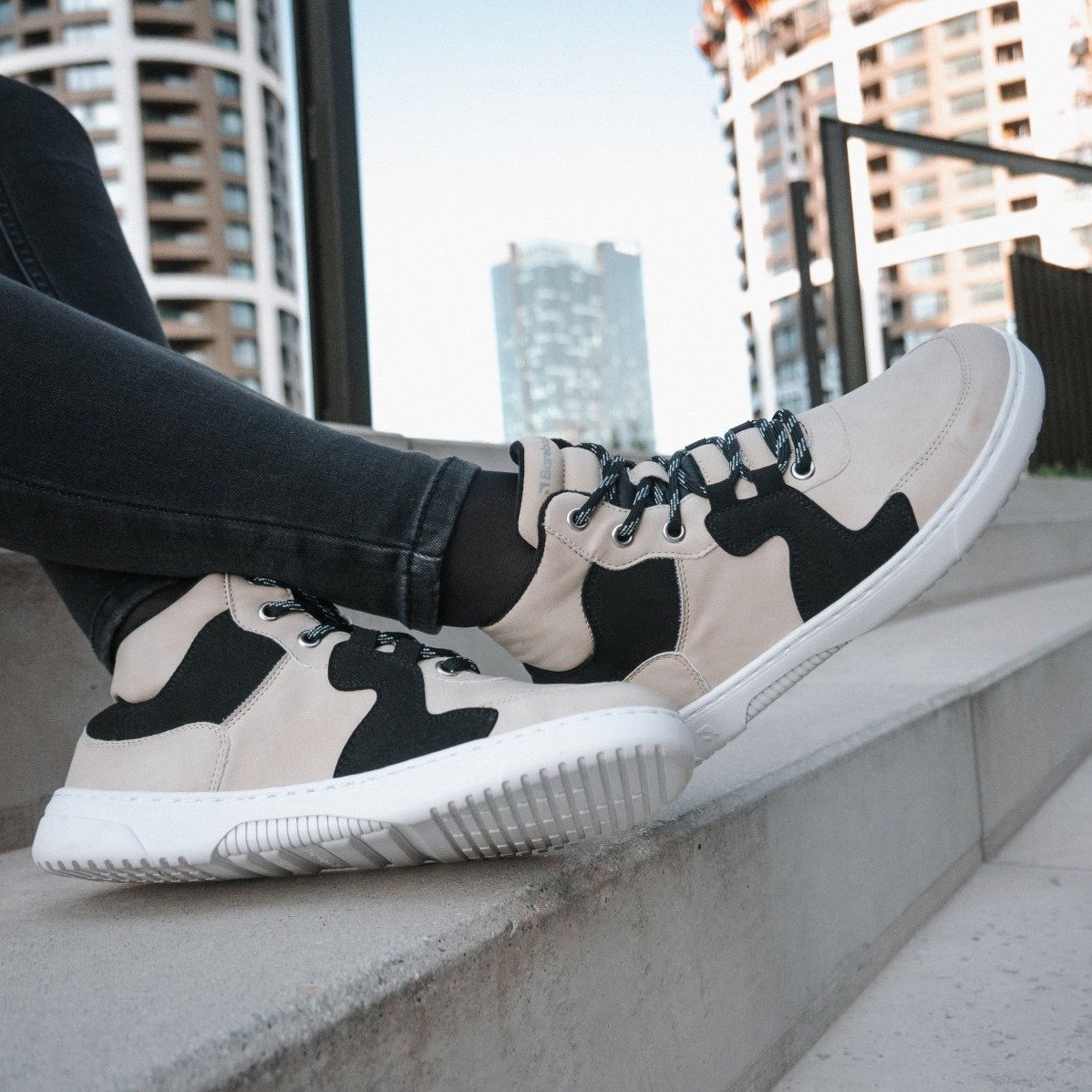 High-top barefoot sneakers Barebarics Lynx in Beige & White are perfect for those who seek unrivalled comfort even in colder months. The distinctive elements of synthetic nubuck complement the basic colors of these exceptionally comfortable sneakers. Enjoy the bold design, stitched sole for longevity, flexible materials, and ample toe space.