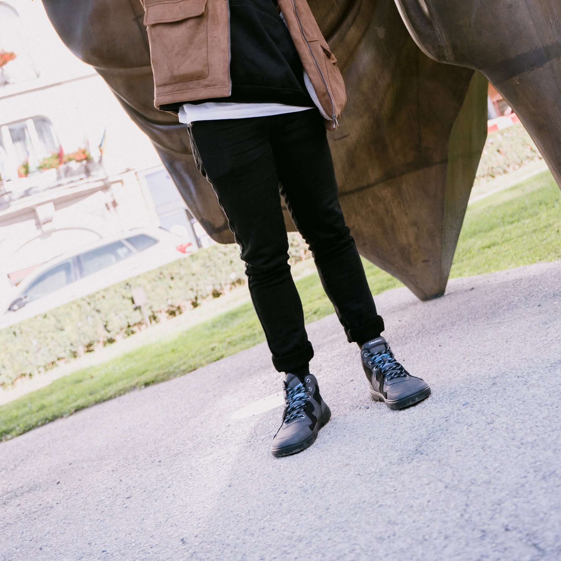 High-top barefoot sneakers Barebarics Lynx in Dark Grey & Black are perfect for those who seek unrivalled comfort even in colder months. The distinctive elements of synthetic nubuck complement the basic colors of these exceptionally comfortable sneakers. Enjoy the bold design, stitched sole for longevity, flexible materials, and ample toe space.